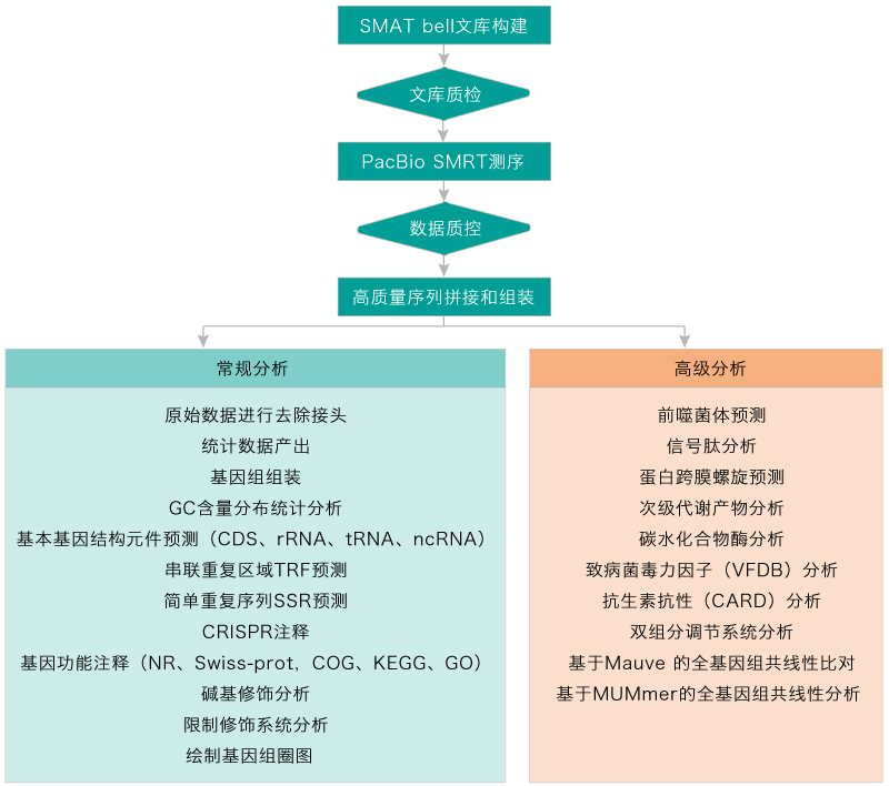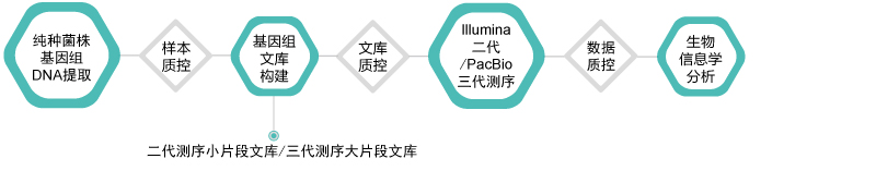 微生物基因组测序,是基于二代测序平台、三代单分子测序平台或联合测序平台,对单一菌株样品基因组进行测序、组装、功能注释和结构比较等工作。根据近缘参考序列信息的有无和测序策略的不同,微生物基因组可以分为de novo测序和重测序两大类。De novo测序通过对细菌或真菌基因组的从头组装,探知其基因组的基因组成、结构元件和功能信息。针对存在近缘参考基因组的变异检测分析,细菌或真菌的重测序可以通过对单核苷酸多态性(SNPs)、插入缺失(Indel)、结构变异(SV)等一系列变异信息的分析,解析其基因组间的性状特征和差异等。