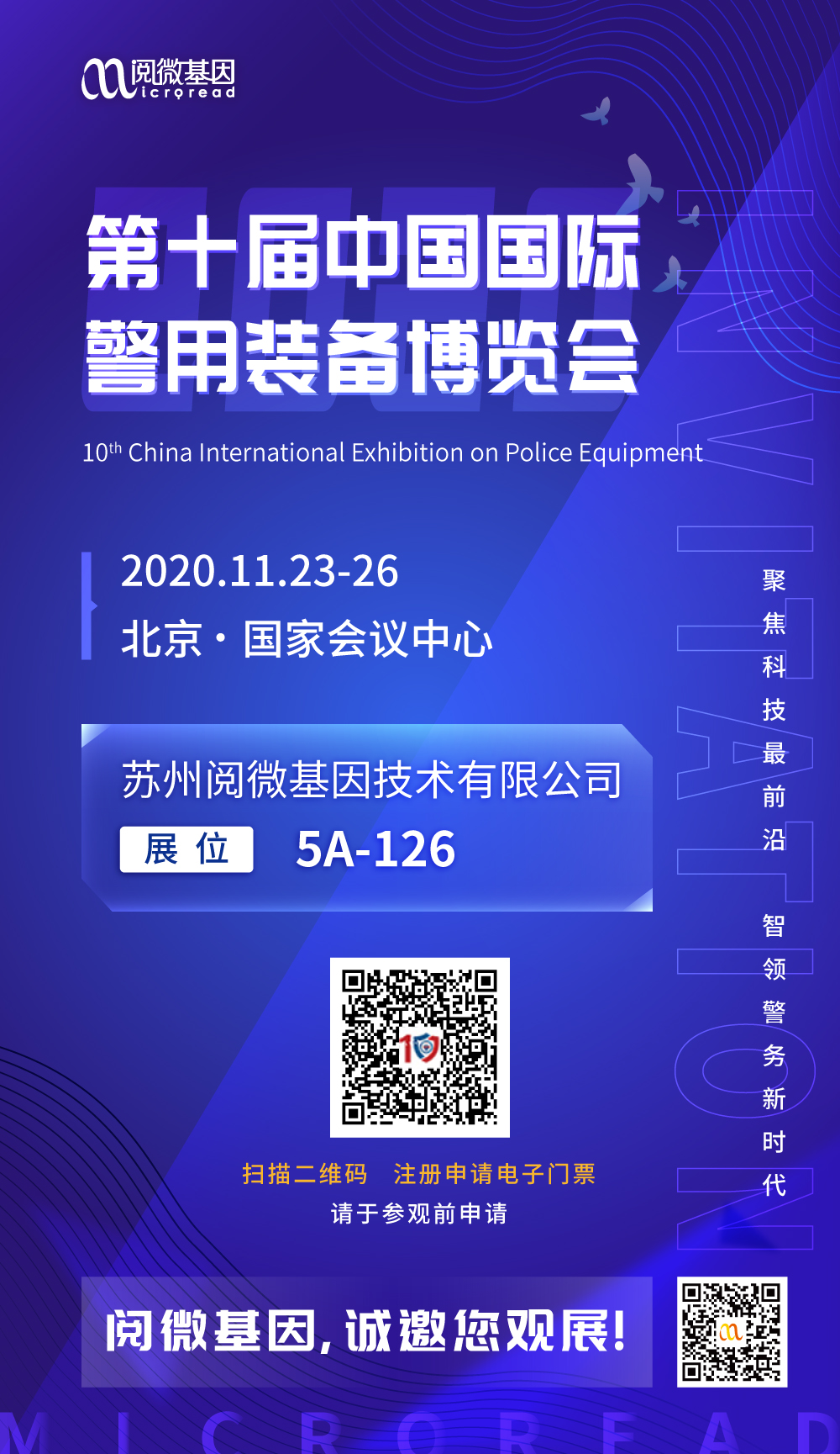 第十届中国国际警用装备博览会即将于11月23日-26日在北京国家会议中心举行,阅微基因在5A-126展位期待您的光临,赶快扫描下方二维码报名吧!