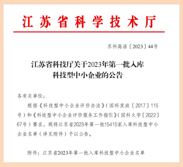 近日,江苏省科技厅对2023年第一批入库科技型中小企业名单进行公示,苏州阅微基因技术有限公司位列其中。