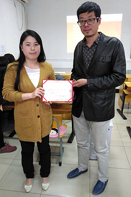陈董事长颁发证书,对她们的工作予以肯定和嘉奖。